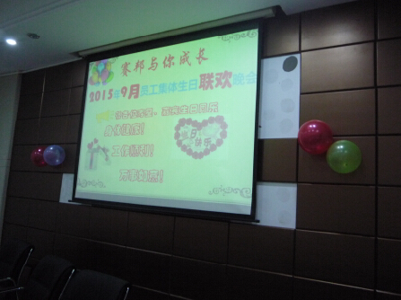 與此同時(shí),佛山南海賽邦也在一樓培訓(xùn)室舉行9月份生日會(huì),生日會(huì)的場(chǎng)地于當(dāng)天下午16點(diǎn)前早就布置好了,周?chē)礉M氣球,現(xiàn)場(chǎng)氣氛熱烈。當(dāng)月的壽星們同各部門(mén)人員聚齊在一起,發(fā)生日卡,收集員工生日祝福,壽星許愿,吹蠟燭,唱生日歌,切蛋糕。大家其樂(lè)融融,幸??M繞其中,也增加了員工的歸宿感。