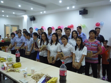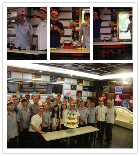 與此同時,佛山南海賽邦也在一樓培訓室舉行9月份生日會,生日會的場地于當天下午16點前早就布置好了,周圍沾滿氣球,現場氣氛熱烈。當月的壽星們同各部門人員聚齊在一起,發生日卡,收集員工生日祝福,壽星許愿,吹蠟燭,唱生日歌,切蛋糕。大家其樂融融,幸福縈繞其中,也增加了員工的歸宿感。